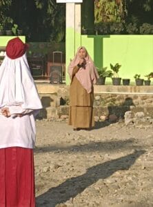 Pasaman Barat– Kepala SD IT Darul Hikmah, Kabupaten Pasaman Barat, Sumatra Barat, Ustadzah Nurkasiah, S.IP pimpin upacara bendera dengan amanat tentang berapa cara meraih keberkahan menutut ilmu di Halaman SD IT Darul Hikmah, Senin (26/1/2025) Pagi.